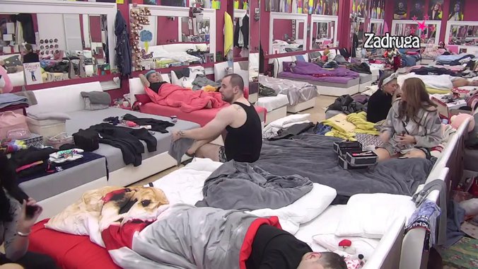 Jovana Tomić Matora, Miljan Vračević i Ana Spasojević su razgovarali o trouglu Slobodana Radanovića, Kije Kockar i Lune Đogani. Njihov razgovor posmatrala je Aleksandra Nikolić koja je svako malo gledala u Zvezdana Slavnića koji je sedeo na krevetu do nje i pratio razgovor.