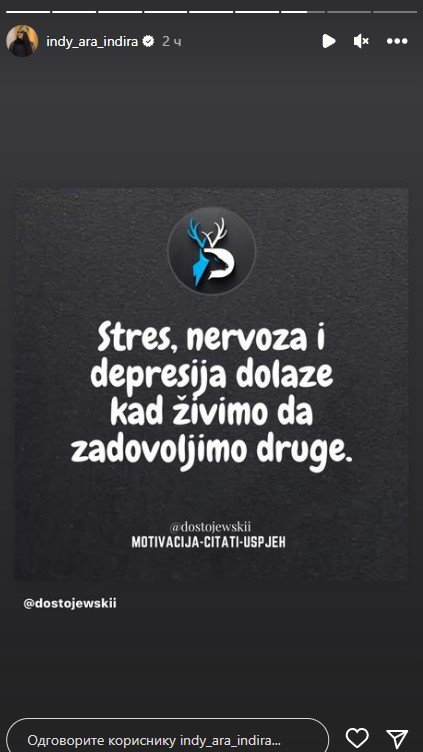 Stres, nervoza i depresija dolaze kad živimo da zadovoljimo druge - napisala je Indi na svom Instagram profilu, a mnogi su shvatili da će upravo ovu naviku odmah promeniti.