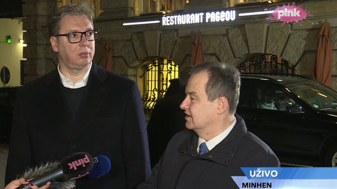 Vučić se danas u Minhenu sastao sa francuskim predsednikom Emanuelom Makronom, kancelarom Nemačke Olafom Šolcom i američkim državnim sekretarom Entonijem Blinkenom, a Dačić je to rekao povodom kritika da Vučić ne brani dovoljno nacionalne državne interese.