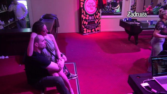 Zvezdan Slavnić sedeo je na stepenicama u kazoinu, a onda mu je prišla Anđela Đuričić i on ju je zagrlio i stavio da sedne u njegovo krilo.