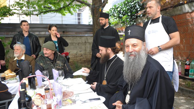 Nakon Vaskršnje liturgije u Hramu Svetog Save na Vračaru, patrijarh srpski Porfirije proveo je Vaskrs na ručku sa beskućnicima u crkvenoj narodnij kuhinji u Beogradu.