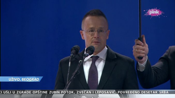 19:54 - Peter Sijarto, ministar spoljnih poslova Mađarske, je rekao da mu je čast da se obrati okupljenima i da on predstavlja bratski narod i da je tako zahvaljujući radu našeg predsednika Aleksandra Vučića.
