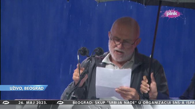 - Ne dam našeg predsednika, kog su svi izabrali. Ne dam Aleksandra Vučića. A i tog predsednika kog su prodali, sve je rekao šta će se desiti. On je takođe rekao da je Srbiji dobro kada su na vlasti patriotske snage. Zato vas molim da se ujedinimo. Pogledajte lepu trobojku i grb. Samo sloga Srbina spasava, samo mir može da donese prosperitet - kazao je on.