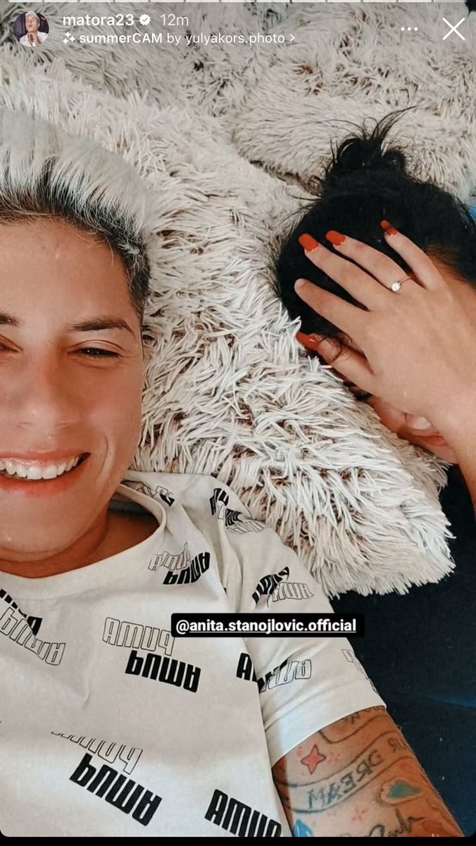 Sve je zanimalo kakav prsten je izabrala Matora i čime je ukrasila Anitinu ruku, a danas je prvi put to pokazala na Instagramu. Iako se Stanojlovićeva krila rukom da joj se ne vidi lice, svi su primetili kako sija verenički prsten.