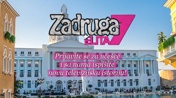 Prijavite se za učešće i sa nama ispišite novu televizijsku istoriju! Svoju biografiju, fotografiju i kratak video u kom ćete se predstaviti pošaljite na mejl zadruga7elita@rtvpink.com. Budite deo projekta o kom će pričati ceo region!