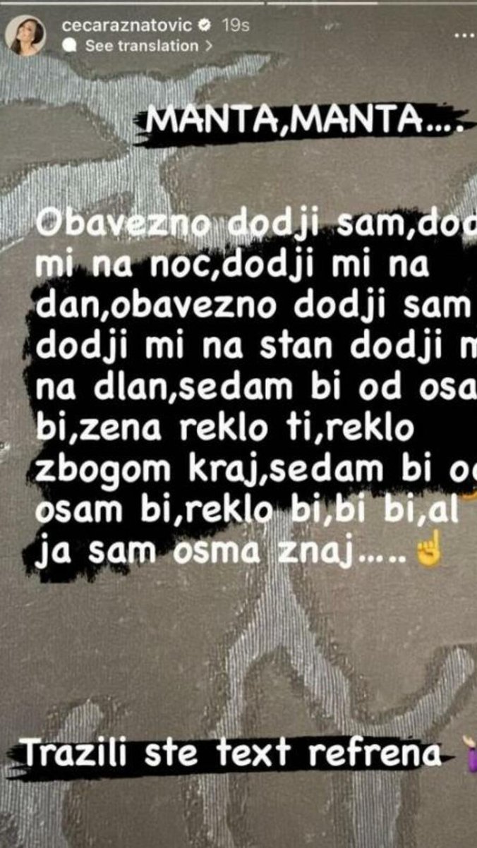 Tražili ste tekst refrena - napisala je Ceca na slici.