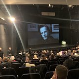 Na video-bimu je prikazana retrospektiva najznačajnijih uloga Žarka Lauševića u Jugoslovenskom dramskom pozorištu. Emitovani su isečci iz predstava "Bal" iz 1988, "Pozorišne iluzije" iz 1991... Dok je salom odjekivao Žarkov glas, čuli su se i prikriveni jecaji i uzdisaji.