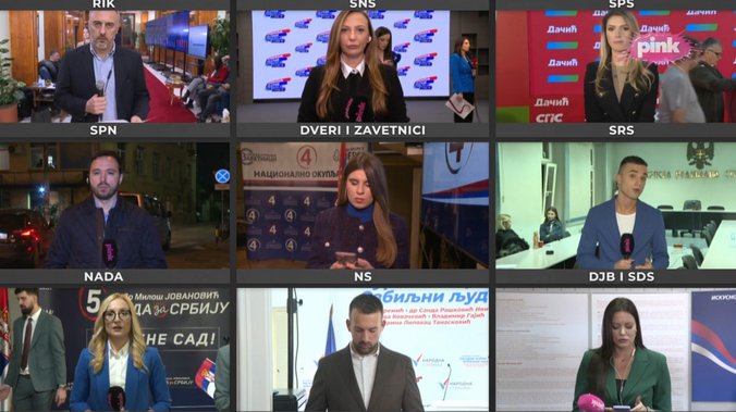 20:00 - Reporteri Pinka su u štabovima stranaka, a u emisiju "Izborna noć" uključiće se i reporteri iz cele Srbije.