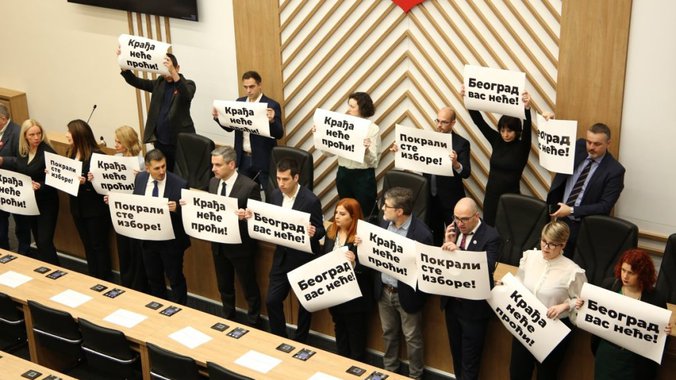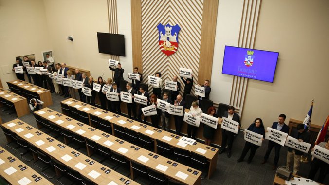 Prema informacijama naših reportera sa lica mesta, Đilasovci su se poređali ispred govornice, ispred dela gde treba da sedi rukovodstvo gradskog parlamenta.