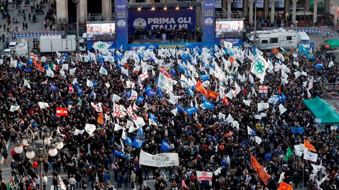 Istovremeno je u Milanu lider partije Severna liga Mateo Salvini (44) održao miting na kojem su organizatori očekivali da će se pojaviti do 50.000 ljudi, navodi Rojters.