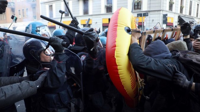 Kako prenosi Rojters, U Milanu se na nekoliko mesta odvijaju demonstracije, ali ima ih i u drugim italijanskim gradovima, a nedaleko od Trga Duomo došlo je do sukoba zato što su levičarski demonstranti pokušali da kroz kordon policije prođu do mesta gde je "Kazapaund" držala miting.