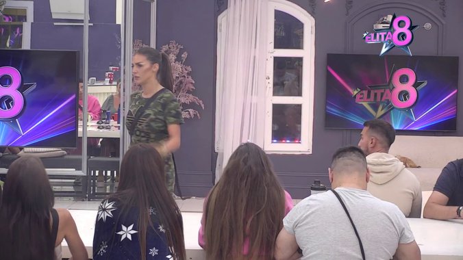 U toku je emisija ''Gledanje snimaka'', a takmičari ''Elite 8'' imali su prilike da pogledaju flert Aleksandre Nikolić i Jovana Pejića Peje. Voditeljka Ivana Šopić je dala reč Eni Čolić kako bi prokomentarisala klip.