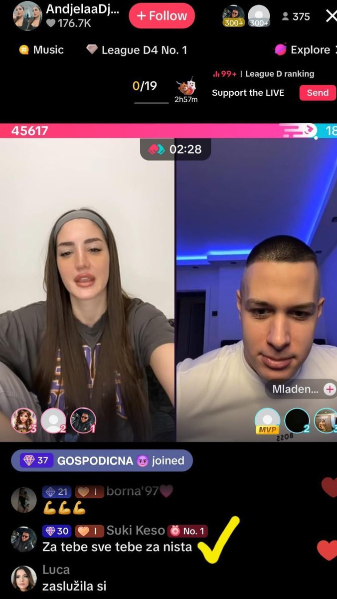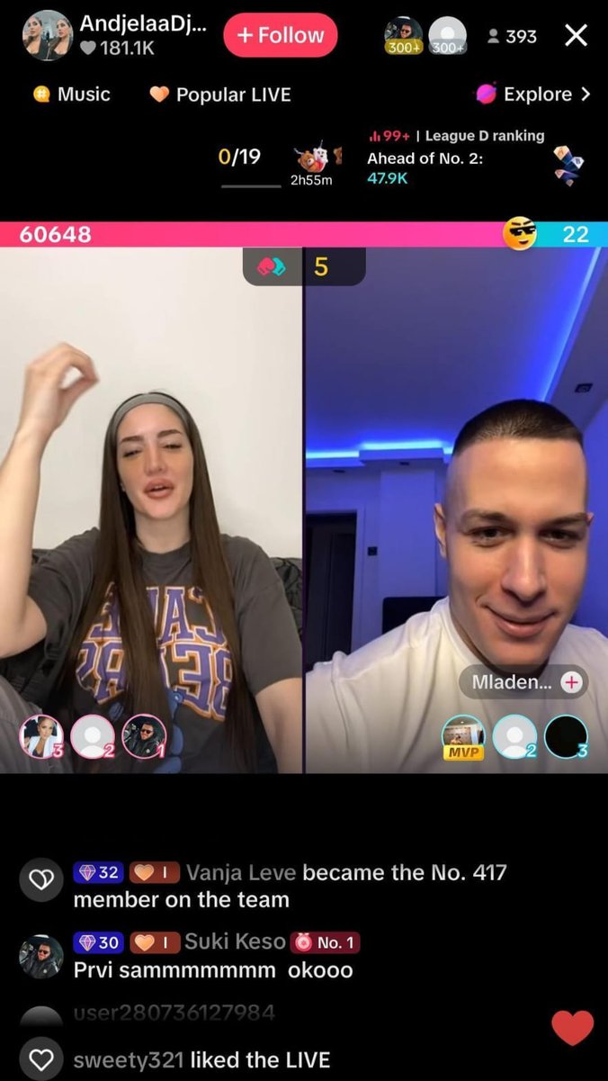 Međutim, Ana Korać nije jedina učesnica rijalitija na koju je Suki bacio oko, već je sad isplivao dokaz da je Anđeli Đuričić takođe slao giftove na TikToku, ali i obraćao joj se vrlo prisno.