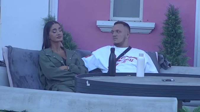 Anđela Đuričić i Nenad Marinković Gastoz poslednje trenutke u rijalitiju koristili su da razgovaraju u dvorištu. U jednom trenutku Gastoz nije mogao da obuzda svoje ruke, pa je počeo da mazi Đuričićevu po vratu, a ona nije mogla da sakrije koliko uživa u tome.