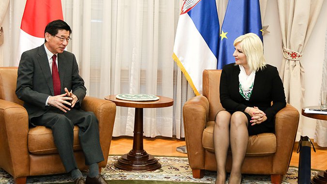 Ona je izrazila zadovoljstvo zbog zainteresovanosti Japana da preko Japanske međunarodne agencije za saradnju (JICA) učestvuje u realizaciji infrastrukturnih projekata koje Ministarstvo vodi, saopšteno je iz Kabineta potpredsednice Vlade.