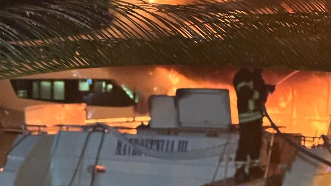 Načelnik budvanske Službe zaštite i spasavanja Dragan Božović kazao je "Vijestima" da su vatrogasci prethodno sprečili da se vatra proširi na okolna plovila. Božović je rekao da je na gašenju požara angažovano sedam ekipa.