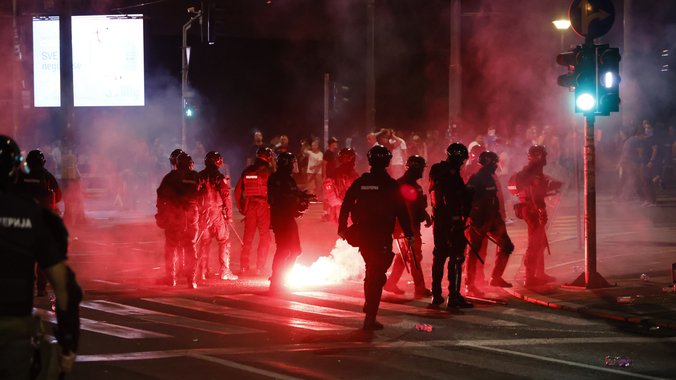 "U cilju potiskivanja okupljenih lica, policijski službenici su intervenisali, i tom prilikom povređena su tri policijska službenika", saopštio je sinoć MUP.