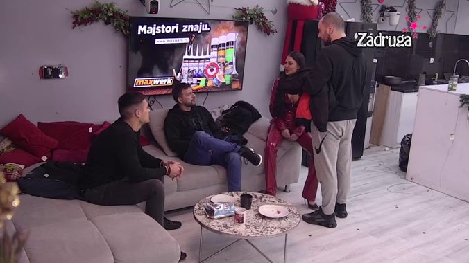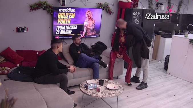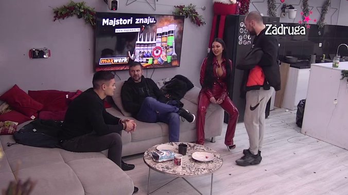 Mikica Bojanić, Zvezdan Slavnić i Marko Marković su čavrljali na garnituri, a u jednom trenutku im je pažnju privukla Maja Marinković, koja se utegla u usku vrelu kombinaciju, koja je isticala njene grudi.