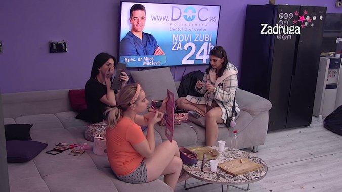 Naime, ona je sela na kauč zajedno sa Milicom Veselinović i Anitom Stanojlović, te je počela sa šminkom, zajedno sa njih dve.
