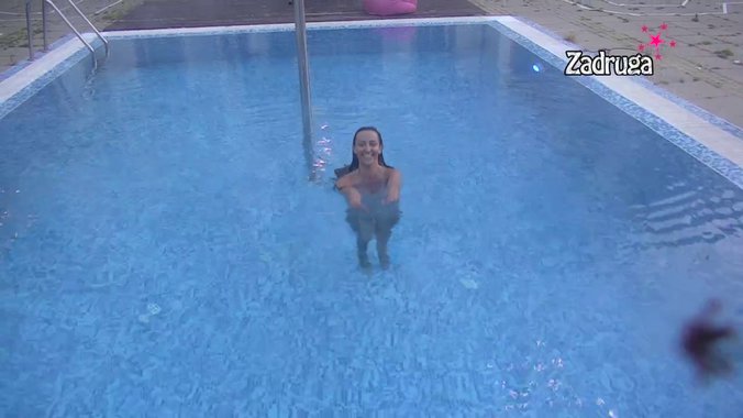 Slađana Lazić je nakon žurke odlučila da se rashladi u bazenu, što je šokiralo većinu zadrugara koji su ostali šokirani njenim performansom.