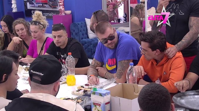 Nakon što je Miki Đuričić poslao čast takmičaraima Elite zbog rođenja sina Arsenija, oni su se svi zaseli za sto i krenuli da jedu.