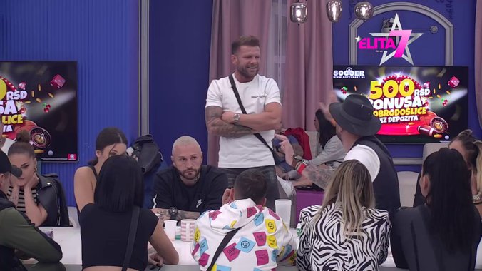 U toku je emisija 'Nominacije'. Večerašnji voditelj je Darko Tanasijević. Ukućani biraju između Marka Janjuševića Janjuša i Jovane Cvijanović kome žele da vide leđa. Na redu da nominuju su Stanislav Krofak, Ivan Marinković, Uroš Rajačić, Bebica i Milica Veličković.