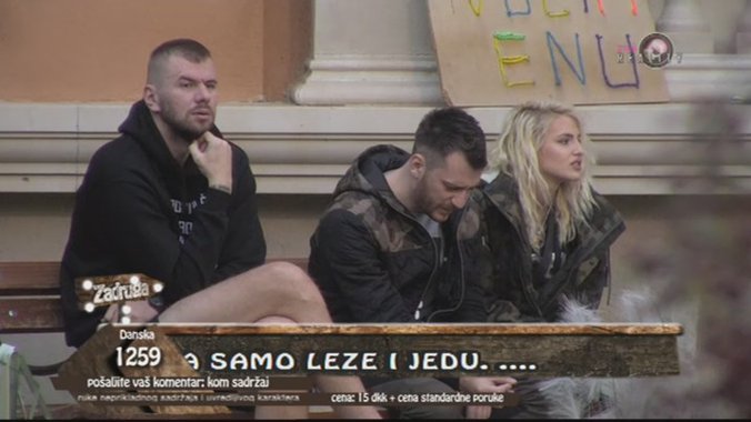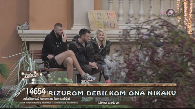 Ova poruka najviše je zapala za oko u trenutku kada su Janjuš, Đekson i Vojke sedeli u dvorištu, a zatim im se pridružila pevačica Sara Reljić, koja je podsećanja radi košarkašu slala ljubavna pisma u "Zadruzi", od koje je Janjuš sada tražio da sedne između njega i Vojketa.
