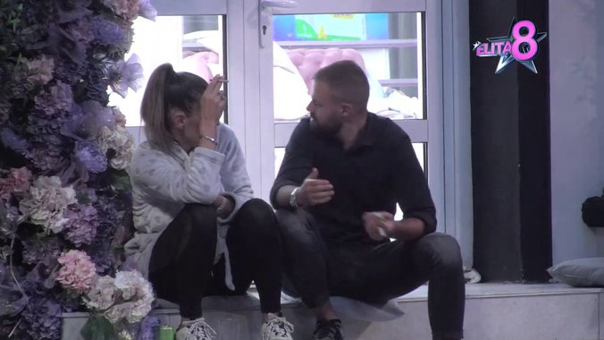 Uroš Rajačić i Milena Kačavenda nikako ne mogu da se odvoje jedno od drugog, on sve vreme pokušava da je zavede grleći je dok Milena pokazuje otpor.