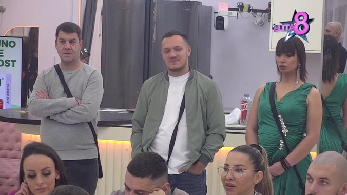 - Neka ustanu Luka i Sandra, neka ustanu Aleksandra i Uroš Rajačić, neka ustanu Gastoz i Miljana, neka ustanu Ivan i Jelena, neka ustanu Peja i Ena, Munja i Saška i neka ustanu Ana Spasojević i Lule. Eto, to je to...Moji potrčci su Ena i Peja - rekao je Terza.