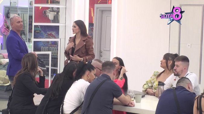 Voditelj Milan Milošević podigao je Anđelu Đuričić, kako bi on sa njom porazgovarao o pljuvačini iza leđa od strane Keti Samardžić.