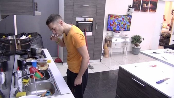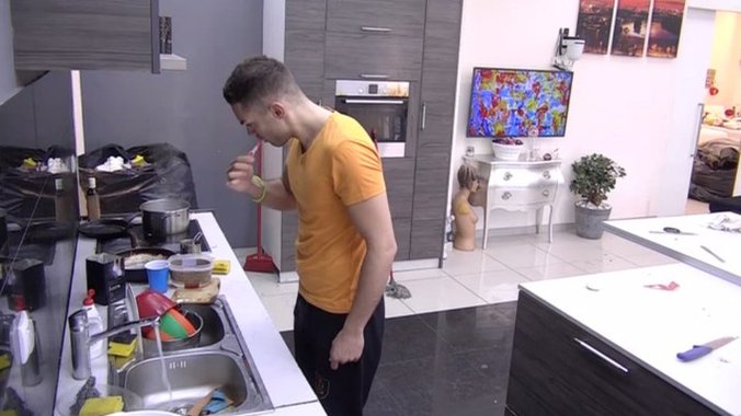 Anđelo Ranković se izgleda ugledao na svoje neuredne cimere, pa je pranje zuba obavio nad sudoperom.