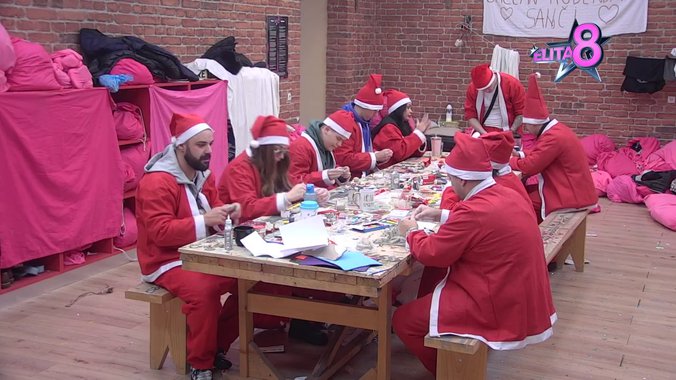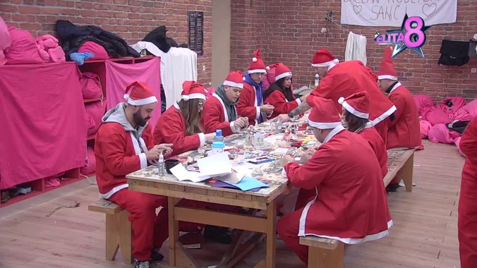 Desetoro takmičara "Elite" dobili je zadatak da budu radnici u fabrici, a danas im je Veliki šef rekao da prave novogodišnje ukrase od kline, koje moraju da dekorišu bojama i cirkonima.