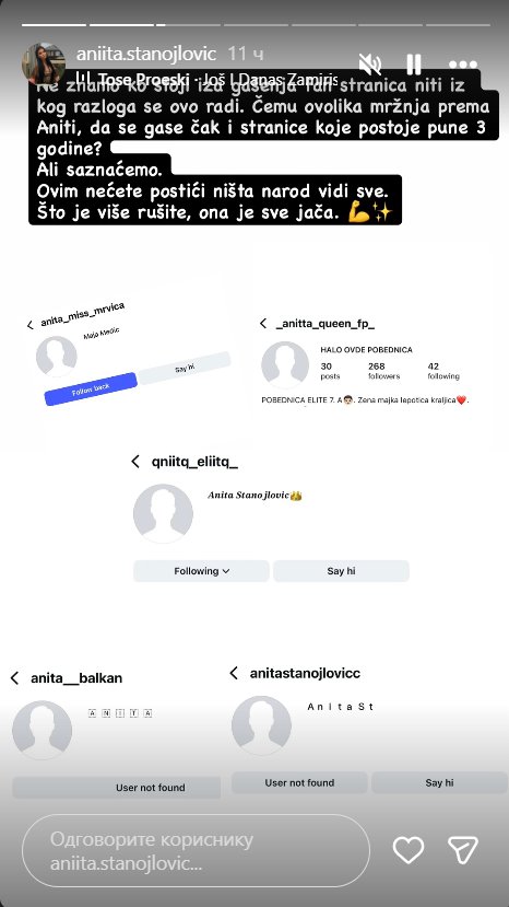 - Ne znamo ko stoji iza gašenja fan stranica, niti iz kog razloga se ovo radi. Čemu ovolika mržnja prema Aniti, da se gase čak i stranice koje postoje pune tri godine? Ali, saznaćemo. Ovim nećete postići ništa, narod vidi sve. Što je više rušite, ona je sve jača - poručila je Tamara, a da li je ovo sajber napad na Anitu ili raspad takozvane "Neviđene armije", kako se nazivaju njeni fanovi, ostaje da vidimo.