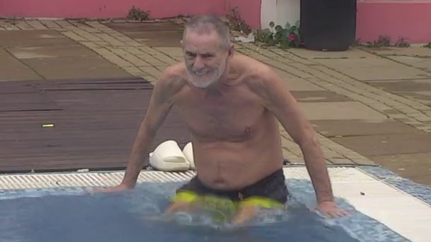 On je komentarisao Miću sa Janjušem i Asminom, dok se Mića kupao, plivao i nije pokazivao znakove da mu je hladno.