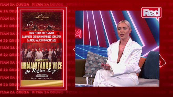 Sandra je, takođe, pozvala gledaoce na humanitarnu žurku za lečenje njene majke. Koncert će se održati 18. februara u Novom Sadu.