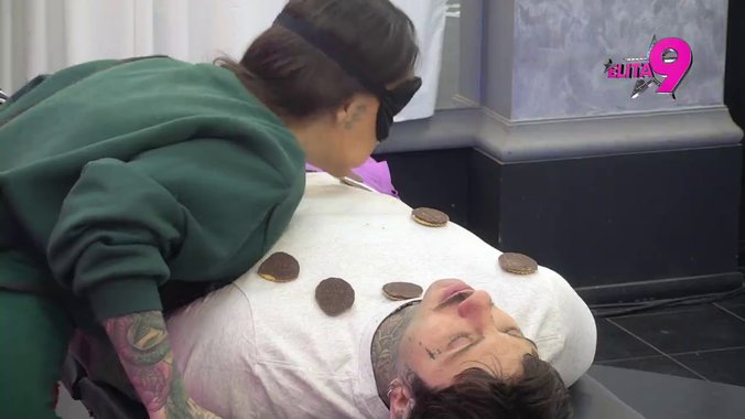 Naime, jedan učesnik morao je da legne na krevet i na sebe stavi keksiće, dok njegov partner s kojim je vezan s povezom na očima treba što više da pojede.