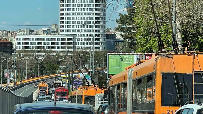 Veliki zastoj je na auto-putu u smeru od aerodroma ka gradu. Kolone su kilometarske, a saobraćaj gotovo da stoji. Velike gužve pristune su na auto-putu od Plavog mosta ka Konjarniku, na delu skretanja iz Ustaničke ulice ka mostu na Dušanovcu.