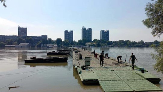 Pripadnici pontonirskih jedinica Vojske Srbije iz sastava Rečne flotile postavili su tokom vikenda pontonski most od Zemunskog keja do Velikog ratnog ostrva.