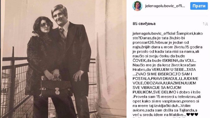 Šampioni, kako ste? Danas, da je tata živ, bio bi ponosan! 26. februar je jedan od najtužnijih dana u mom životu. Petnaest godina je prošlo od kada tata nisi sa nama, ali naučio si svoju ćerku da bude čovek,da bude iskrena i da voli - počela je Jelena svoju ispovest u opisu fotografije svojih roditelja.