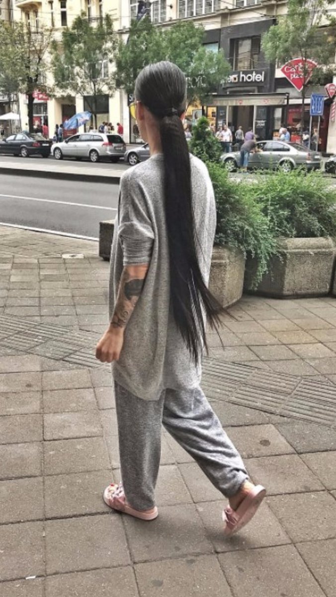 Ekstenzijama od prirodne kose u istoj nijansi nadogradila je svoju kosu, pa je novu frizuru ponosno prošetala centrom srpske prestonice.