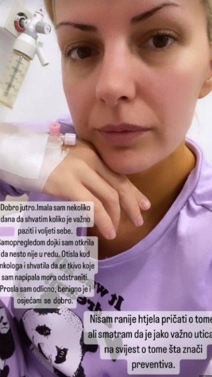 Bilo bi dobro da se više edukujeno, budemo pažljivi i odgovorni prema sebi. Ne treba paničiti, ali treba biti prizeman i biti nežan prema svom telu i zdravlju. Očigledno je da je svaki redovan pregled jako važan- završava pevačica.