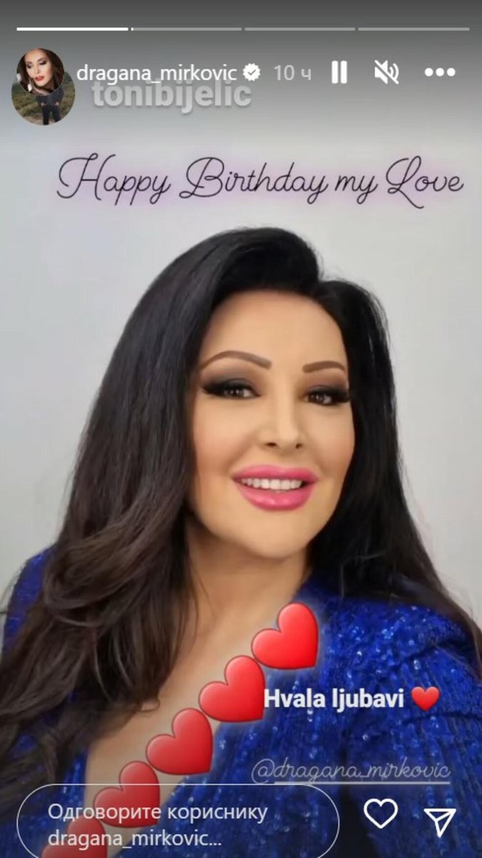 Među prvima čestitao joj je njen suprug, biznismen Toni Bijelić, sa kojim je u srećnom braku čak 24 godine. Toni je, naime, objavio Draganinu fotografiju i uputio joj emotivne reči.