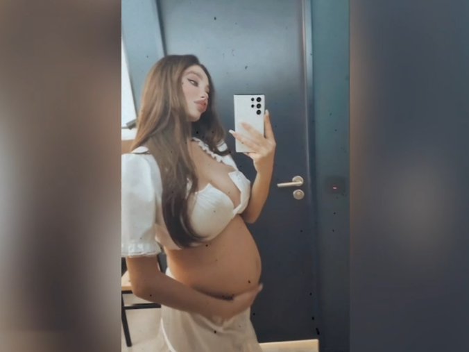 U dugačkoj suknji i bluzi iznad stomaka, ona je pozirala ispred ogledala u jednom hotelu i zabeležila trenutak kako mazi trudnički stomak.