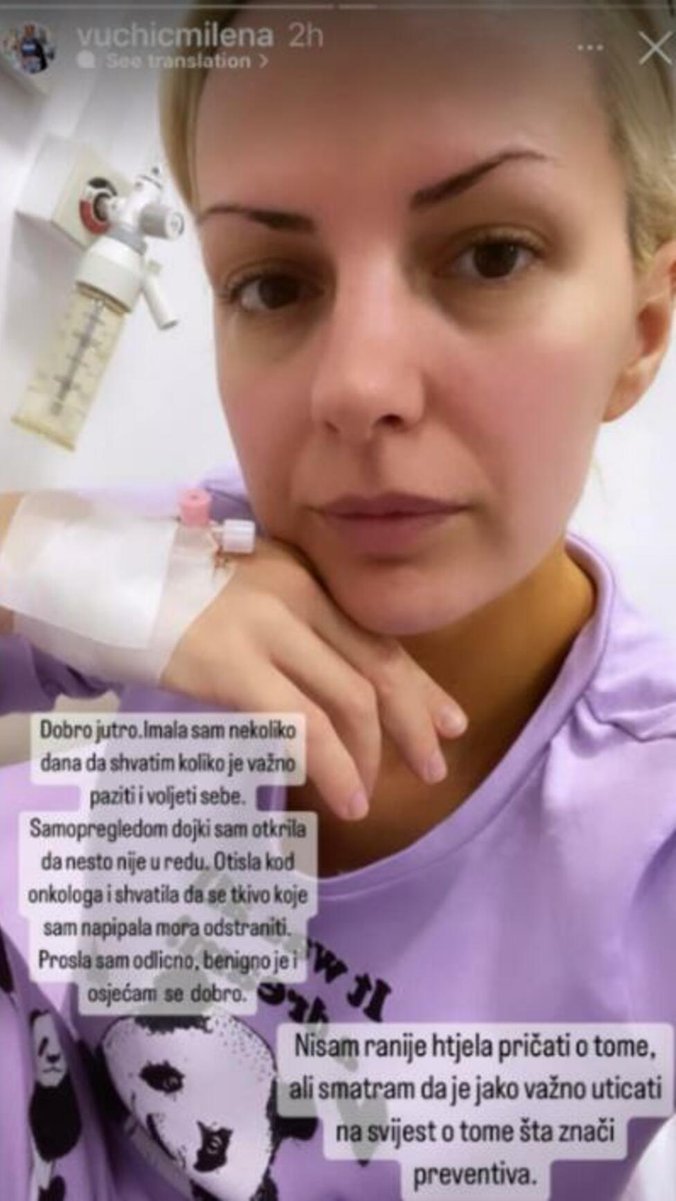 - Dođe trenutak kada shvatiš da je sve moguće i da sve može da se desi svakome. Bio je crv sumnje koji mi nije dao mira. Nisam mogla da ne razmišljam o tome, definitivno sam bila uplašena i to sam videla po slikama - otkrila je Milena Vučić, koja nije mogla da se smiri dok nije bila gotova operacija i dok nije došao nalaz, koji je, na svu sreću, bio dobar.