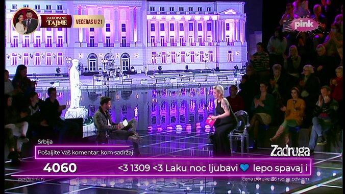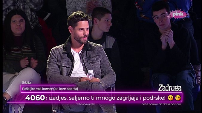 Marko Milovanović je ispao iz Zadruge, njega je u studiju dočekala devojka Zorana. Marko kada ju je video je poleteo u njen zagrljaj što su svi pozdravili aplauzom.