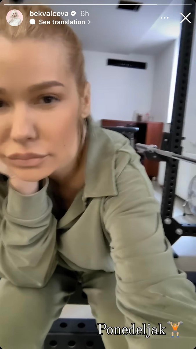Ona dosta vremena provodi u teretani, radeći na svom telu koje nikoga ne ostavlja ravnodušnim. Svoje pratioce je rano jutros "počastila" storijem na istagremu, upravo iz teretane.