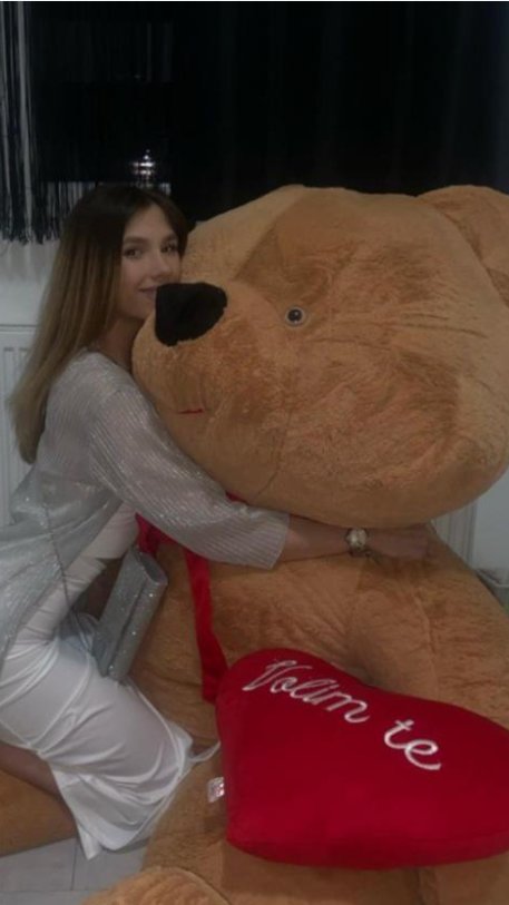 Ti si moja zvezda, i moj astronom, i želeo bih da sam nebo, da te mogu posmatrati sa milijardu očiju - ispisano je uz fotografiju Ane Kulić sa ogromnim plišanim medvedom koji u šapama drži srce sa natpisom "Volim te".
