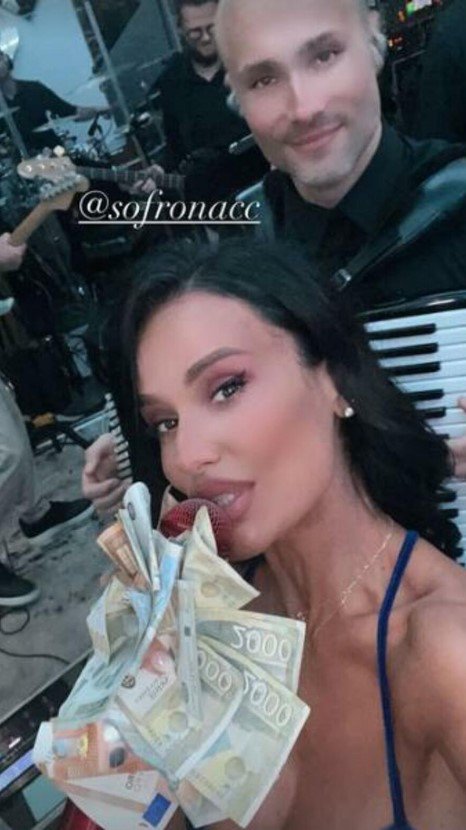 Pevačica je u haljini otvorenih leđa vrtela kukovima, podigla atmosferu do maksimuma, a onda pesmom i glasom napravila pravi delirijum. Gosti su se slikali sa njom i sve vreme vadili novčanice iz džepova.