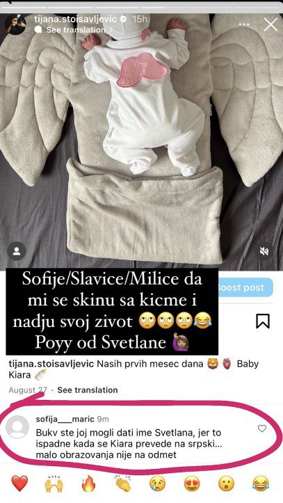 Naime, izvesna Sogija napisla je kometar kako je Tijana trebala da dete krsti Svetlana jer je upravo to prevod imene Kiara.