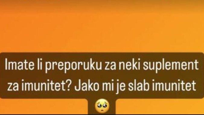 - Imate li preporuku za neki suplement za imunitet? Jako mi je slab imunitet - priznala je Luna, uz emotikon sa očima punim suza.